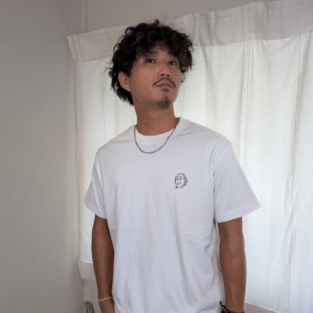 そして20世紀最高の物理学者と評される偉人のあの写真を、ゆるくアレンジして胸のワンポイントTシャツに。